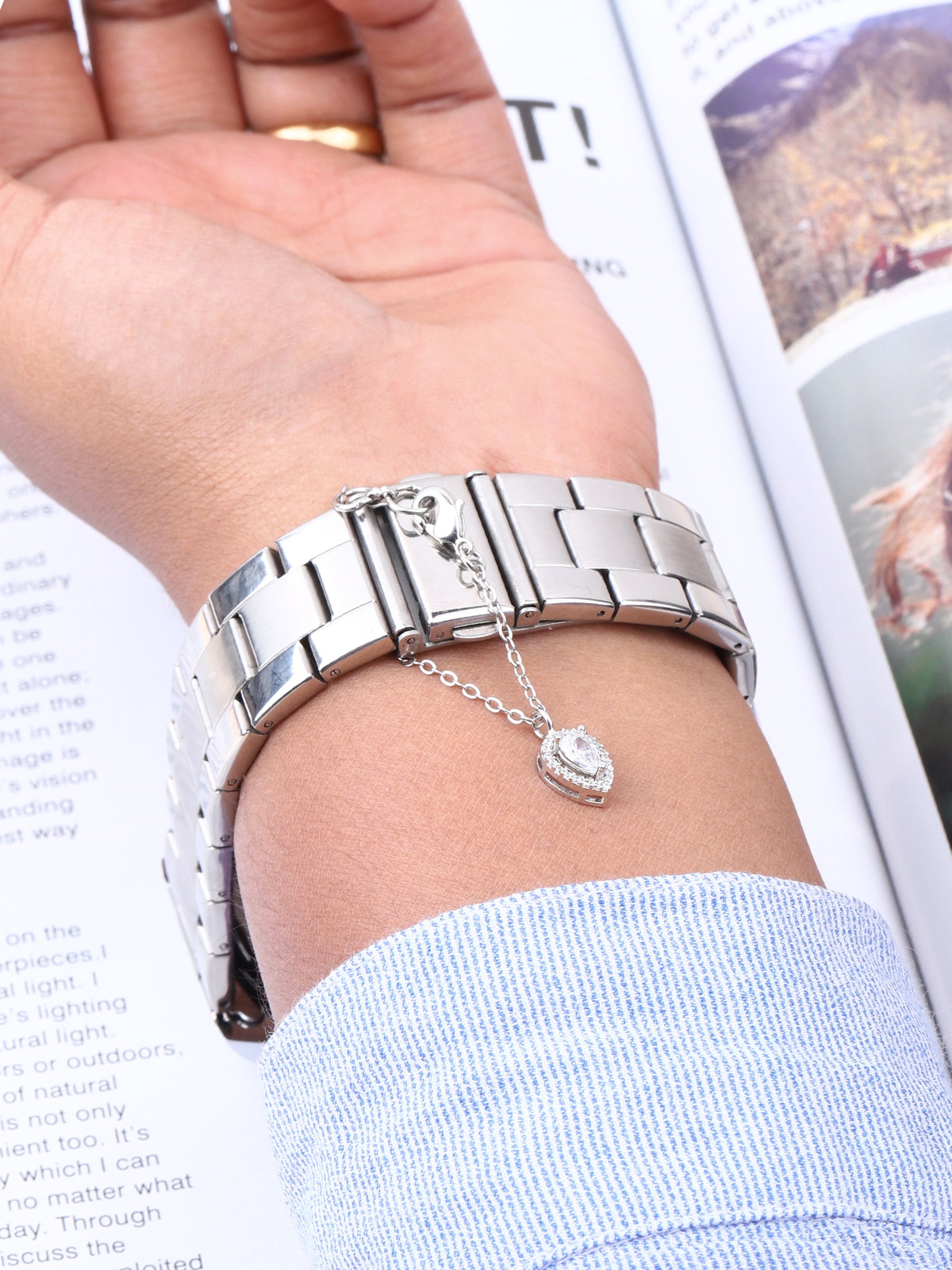 Pear Shape Solitaire CZ Watch Charm (Silver)